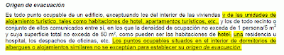Según la definición de origen de evacuación en la terminología del documento DB SI comentada, se aclara para establecimientos hoteleros del tipo apartahotel, que el origen de evacuación se asimila al de vivienda, situándose éste en el acceso al mismo.